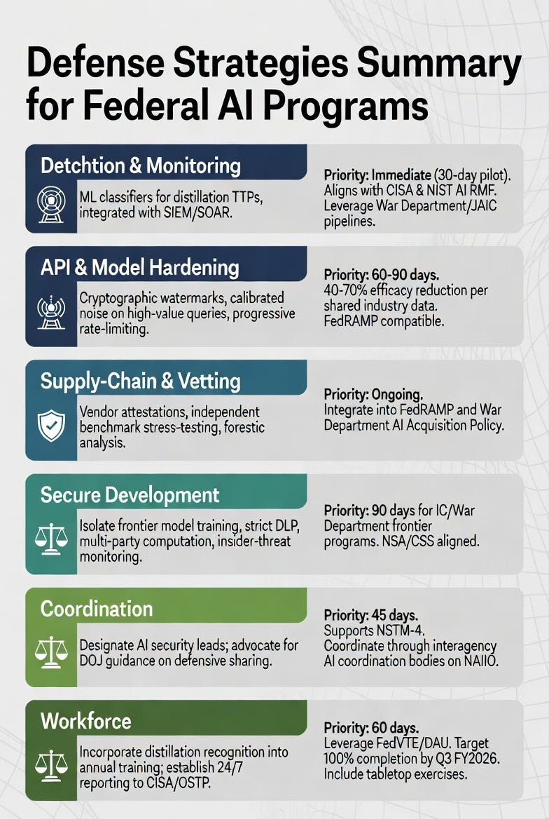 2. Best Practices Development: Joint government-industry working groups will codify technical and procedural defenses against large-scale distillation.